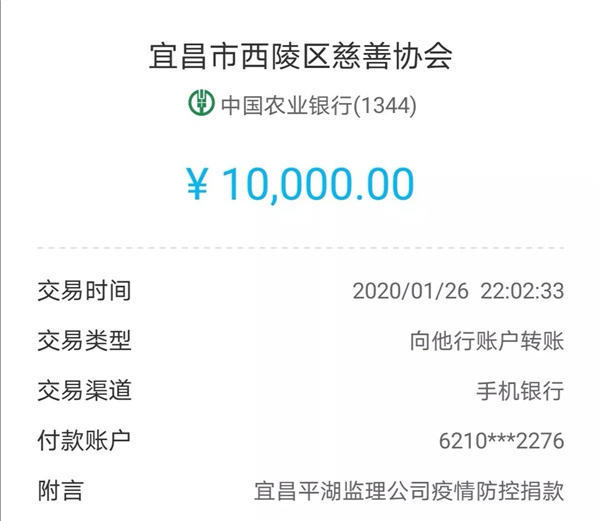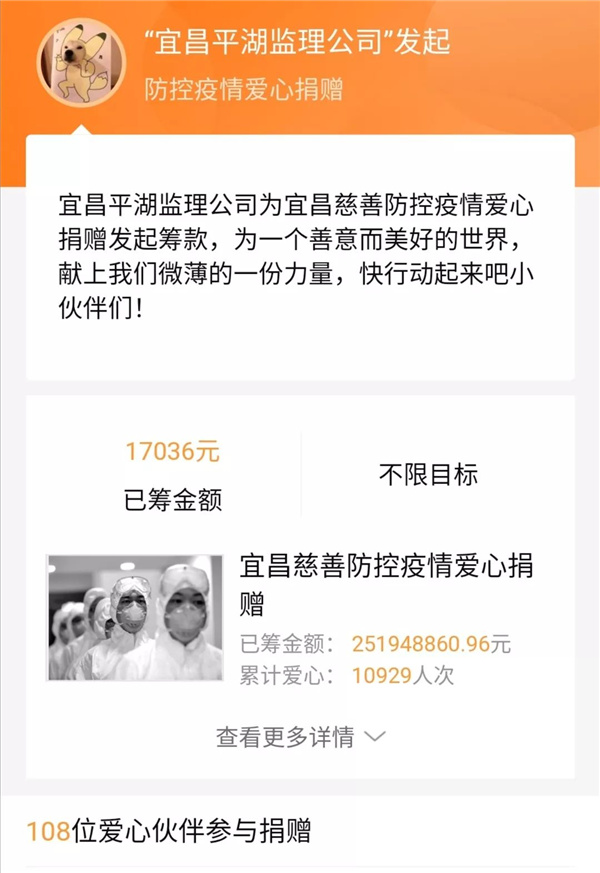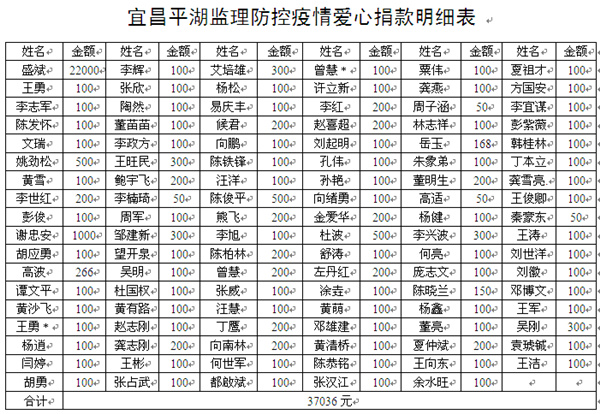 突发的新型冠状病毒感染肺炎疫情牵动着党中央和全国人民的心,全国各地已启动突发公共卫生事件Ⅰ级响应,各部门、各行业积极行动,投身到抗击疫情的第一线。团结一心、众志成城,坚定不移打赢这场无硝烟的抗疫之战,已全面进入决战时段。 春风杨柳万千条,六亿神州尽舜尧”,抗击疫情平湖有责。我们虽不是白衣天使,不能做到义无反顾奔赴前线抗击疫情,但我们能够情系前线,献出我们的一份爱。公司党支部号召全体员工弘扬守望相助精神,积极行动捐款援助,用善举彰显平湖监理人的责任担当,同呼吸、共命运、心连心,为决胜疫情做出积极的贡献! 由于疫情严重,公司取消节后面签报到,用爱国捐款的方式,在坚定支持抗击疫情中报到。以信念备战,用爱心参与,为胜利助力! 2月8日我公司党支部发起的爱心捐款,短短3个小时,108位同事踊跃参与,奉献善款17036元。加上公司总经理1月26日捐款10000元、1月28日捐款10000元,我公司参与抗疫共计捐助37036元。爱心还将持续。