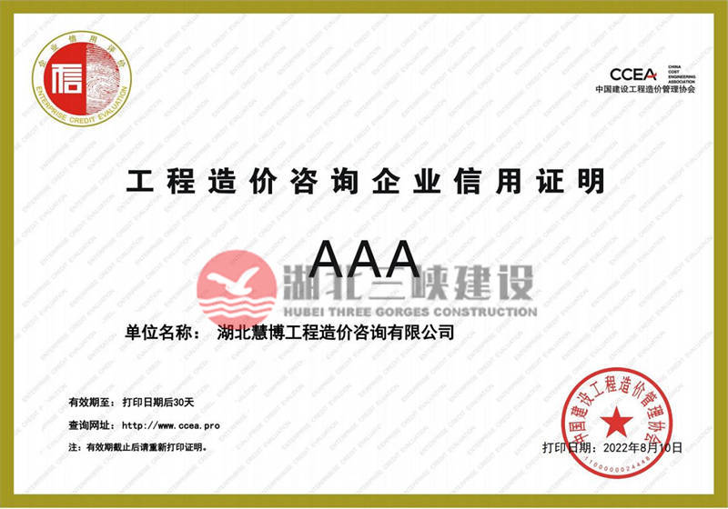 工程造价咨询企业信用证明AAA