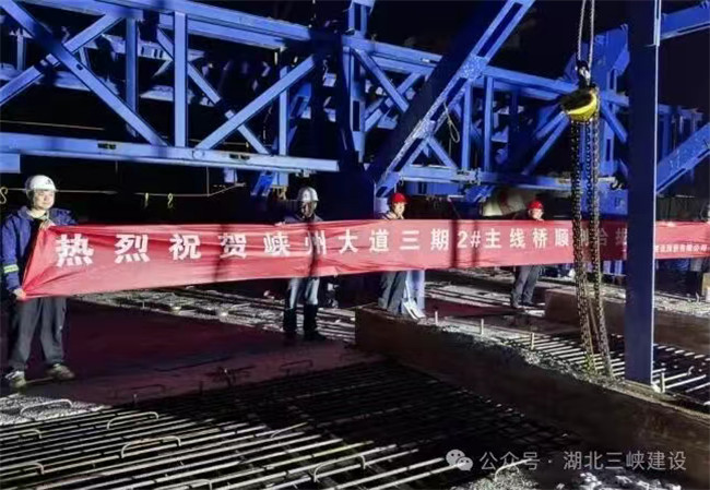 峡州大道三期全长约19.1公里,设计时速80公里/小时,主线双向6车道,城市快速路,串联猇亭区、夷陵区、枝江市与东部产业新区,是“四纵六横”快速路网关键部分。本次合龙的2号主线桥为项目控制性工程,全长1.1公里,其中跨G50沪渝高速段长209米,桥宽36米,左幅主跨(90m)悬臂箱梁顺利合龙,标志着2#主线桥全线贯通,为项目按期通车奠定了坚实基础。建成通车后,白洋产业园区到中心城区的通勤时间缩短15-20分钟,与空铁枢纽实现高效衔接,助力产业集群集聚,将为宜昌东部产业新区快速发展注入强劲动能。