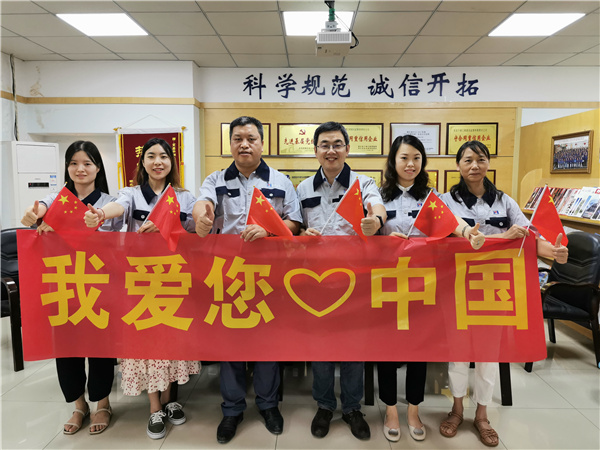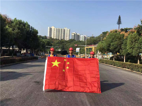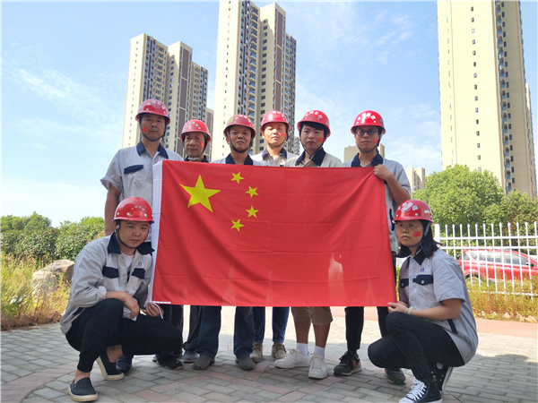 五星红旗迎风飘,我和我的祖国心连心,愿祖国的明天更美好! ---江畔大地项目监理部